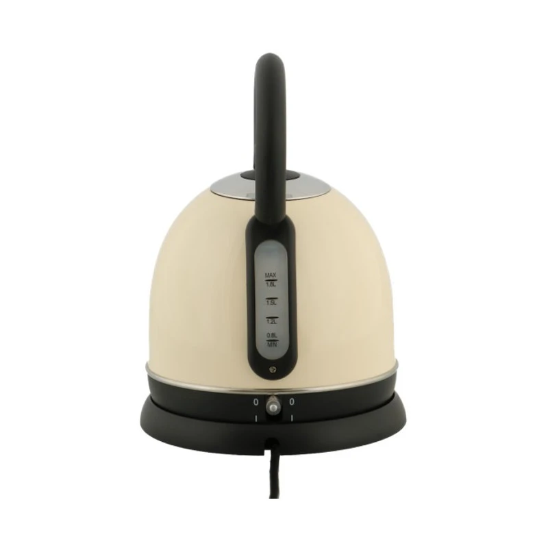 Avec son super look rétro ressemblant à une bouilloire à sifflet, elle est quand même dotée de nombreux standards du marché : socle rotatif 360°, arrêt automatique à ébullition, voyant de fonctionnement et protection contre fonctionnement à sec. Conçu pour être rangée facilement dans un meuble de votre camping-car ou bateau, le fil électrique s’enroule sous la base afin qu’il ne gêne plus… Pratique !